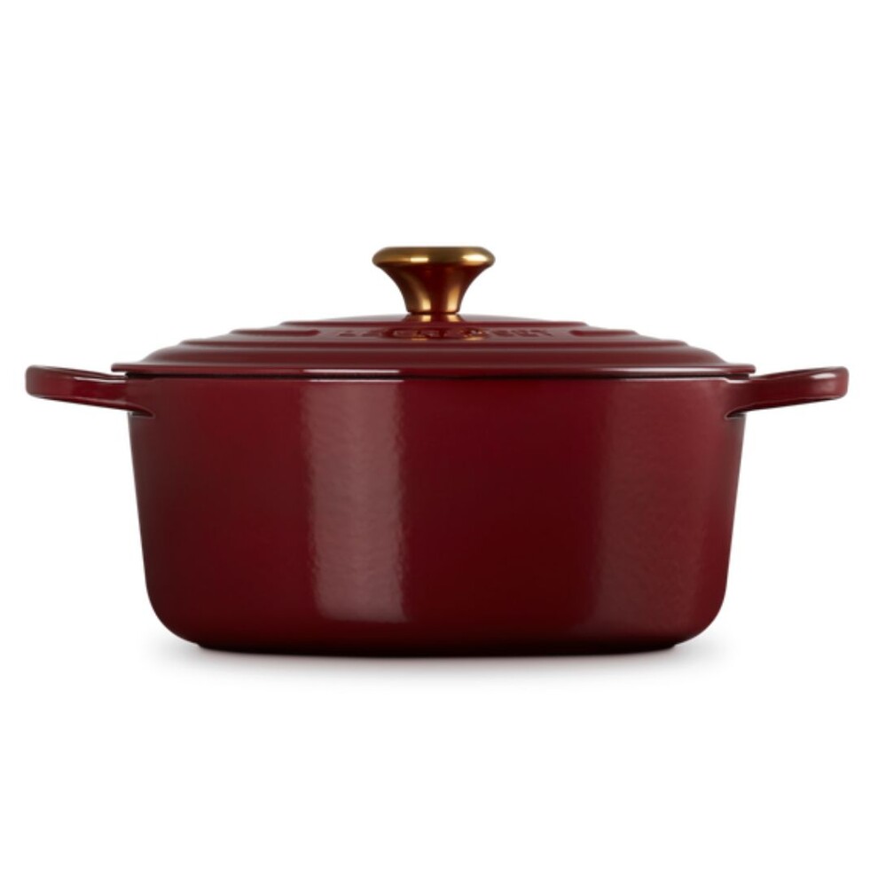 Cocotte ronde 28 cm Rouge Garnet bouton doré