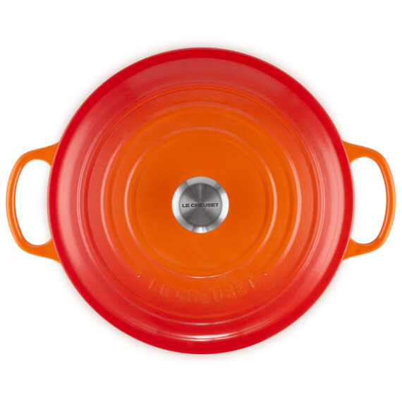Sûr de la robustesse de ses produits, Le Creuset garantit ses cocottes à vie. Chaque cocotte est unique (le moule est détruit après la cuisson) et émaillée à la main.
