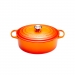La cocotte en fonte Le Creuset ovale 27 cm coloris orange Volcanique (finition brillante) possède une capacité de 4,1 litres.