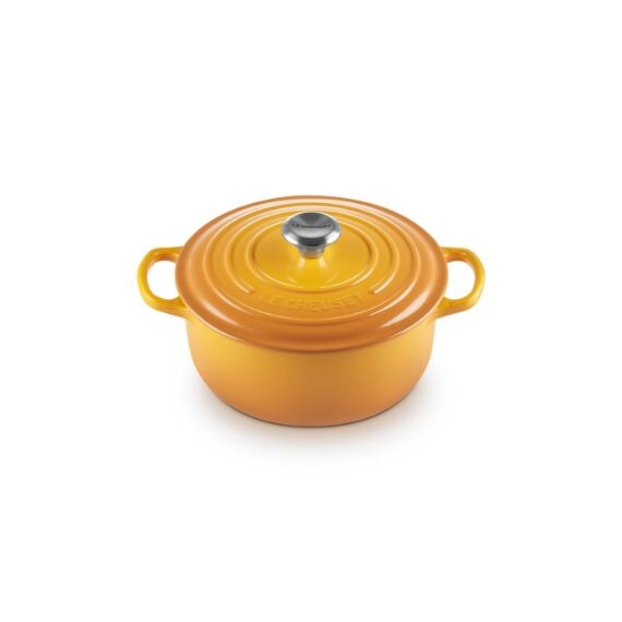 Une cocotte garantie à VIEAvec son émail renforcé, la cocotte en fonte Signature résiste aux épreuves du temps (salissures, ternissement, rayures). Il ne s'altère pas sous l'action des acides alimentaires (vinaigre, jus de citron, vin blanc, sauce tomate...), de la vapeur et de l'ébullition. Votre cocotte Le Creuset est un investissement pour le long terme : avec le temps elle conserve toutes ses qualités initiales. Le coloris "Nectar" est un jaune orangé vibrant qui évoque la chaleur et la convivialité. C'est la pièce maîtresse idéale pour impressionner vos invités.