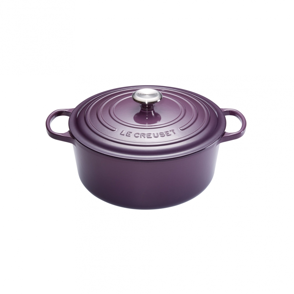 La cocotte en fonte Le Creuset ronde 22 cm coloris violet Cassis (finition brillant) possède une capacité de 3,3 litres.
