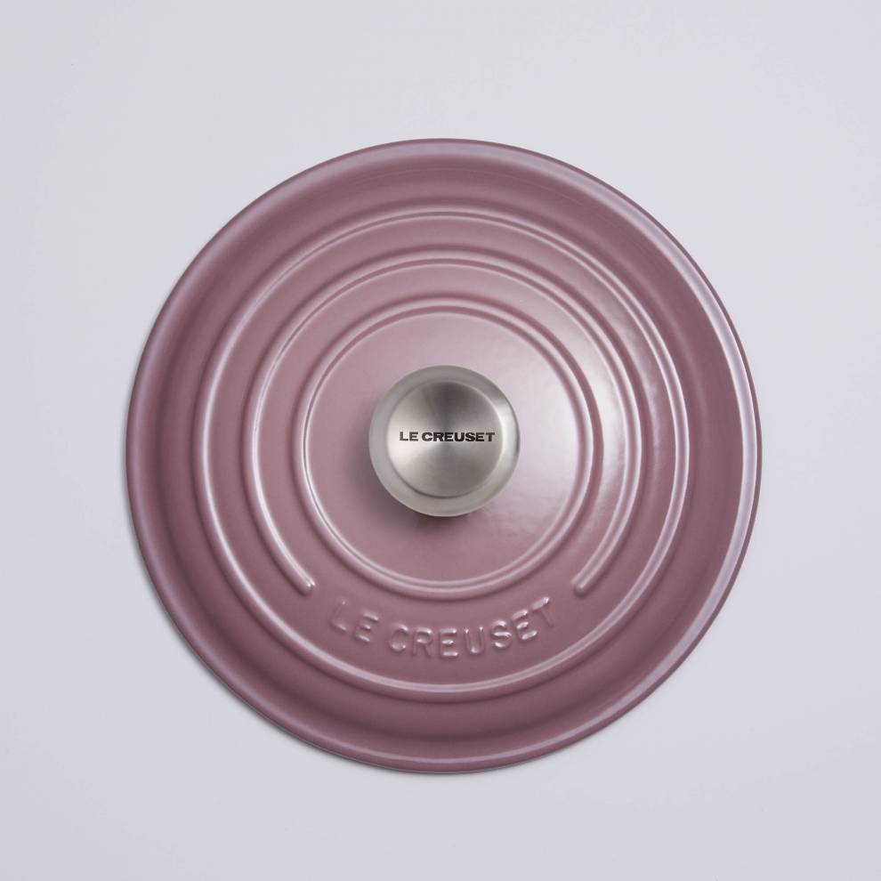 Avec la cocotte en fonte ronde 26 cm coloris rose Mauve Pink, vous apporterez une note légèrement "vintage" à votre table avec cette douce nuance tirant sur le mauve.