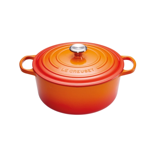 Cocotte Signature en fonte émaillée ronde 26 cm orange Volcanique