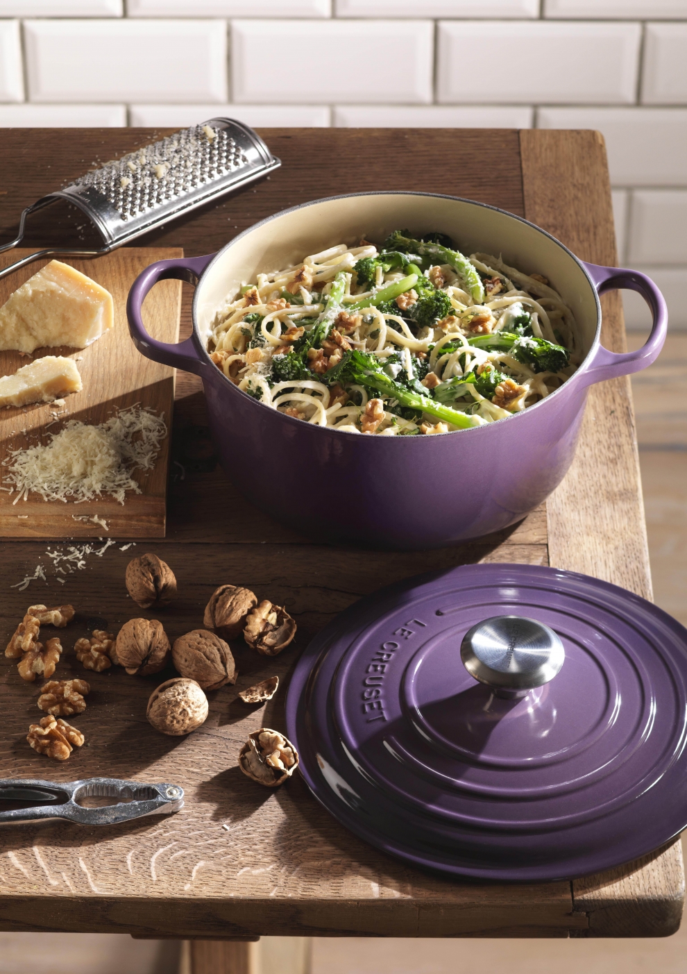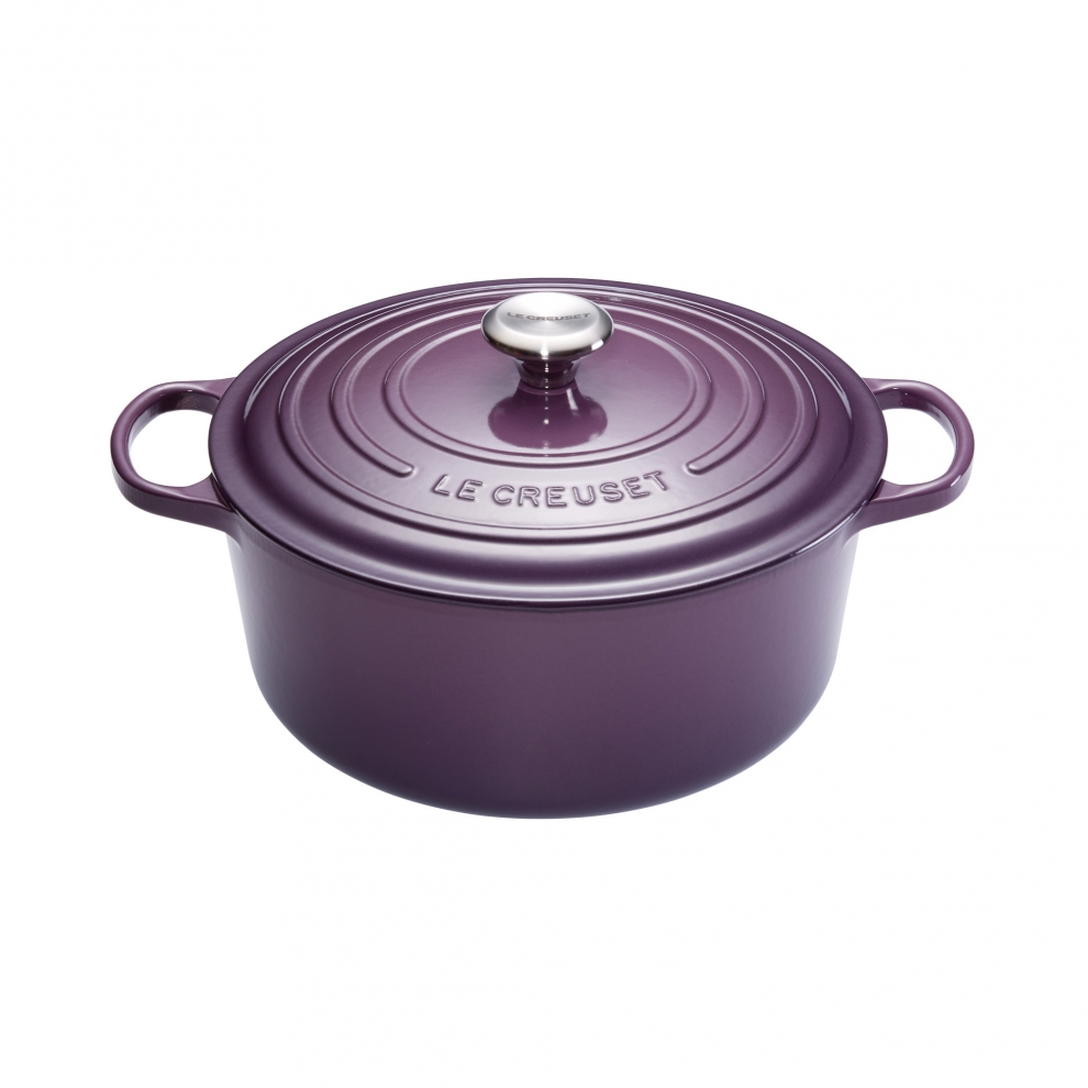 Avec la cocotte en fonte ronde 28 cm coloris violet Cassis, votre table sera parée d'une vibrante touche de mauve très contemporaine.