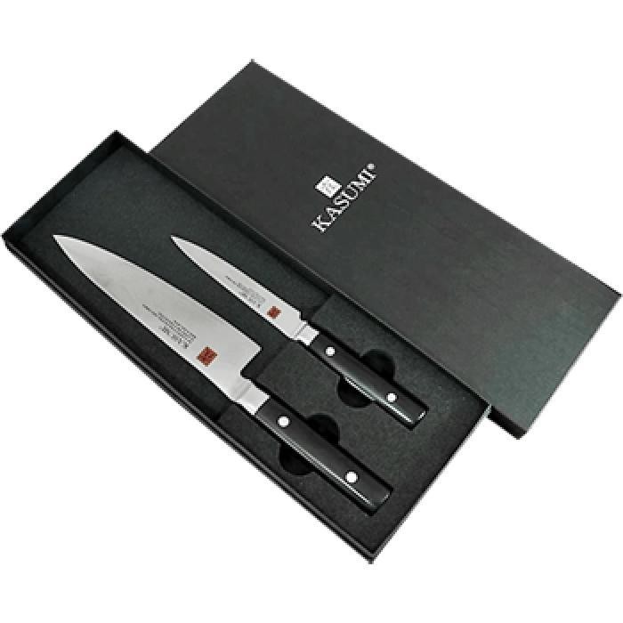 Le couteau du Chef est indispensable pour émincer les viandes ou les légumes, tandis que le couteau d'office est parfait pour tous les travaux rapprochés.