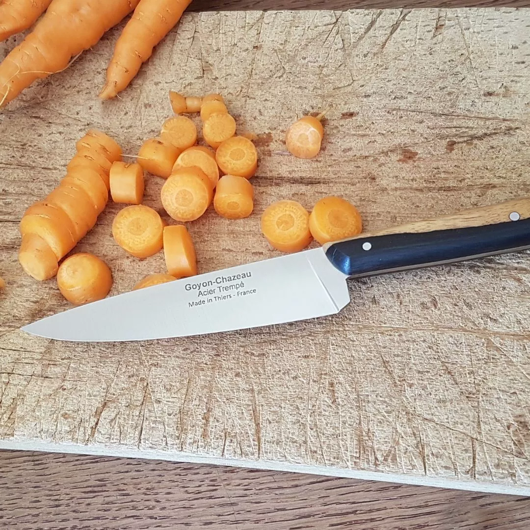 Ce couteau de haute qualité, fabriqué à la main dans l'atelier de Goyon-Chazeau, est conçu avec l’acier Sandvik 14C28N, un des meilleurs aciers de coutellerie enrichi en carbone.