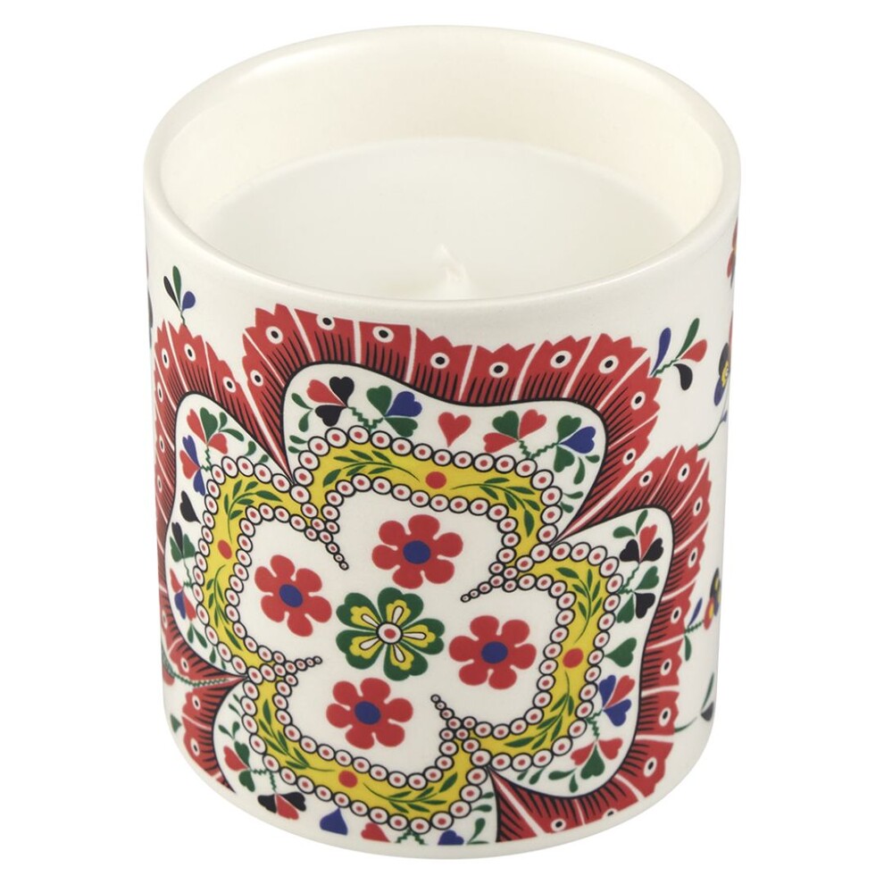 Son amour pour les arts décoratifs et l’artisanat français l’a naturellement menée à collaborer avec Gien. Pour la collection « Chance Folle », Nathalie Farman-Farma a imaginé un foulard folklorique inspiré du trèfle à quatre feuilles, qu’elle a ensuite déconstruit et réassemblé en une série de ribambelles. Ces éléments se mêlent et se réinventent sur la table, offrant une nouvelle lecture du motif.
