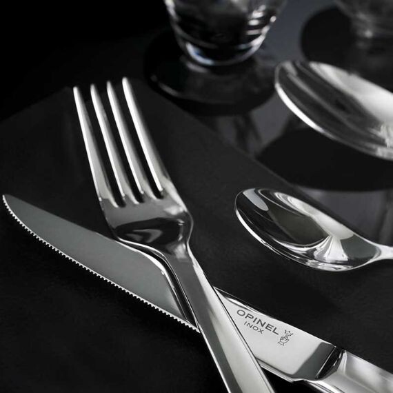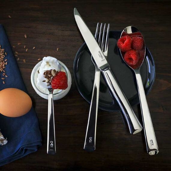 Ce coffret de 16 pièces de la collection Perpétue d'Opinel est un ensemble complet de couverts de table de grande qualité. Il s'accorde parfaitement avec tout style de vaisselle et de table.