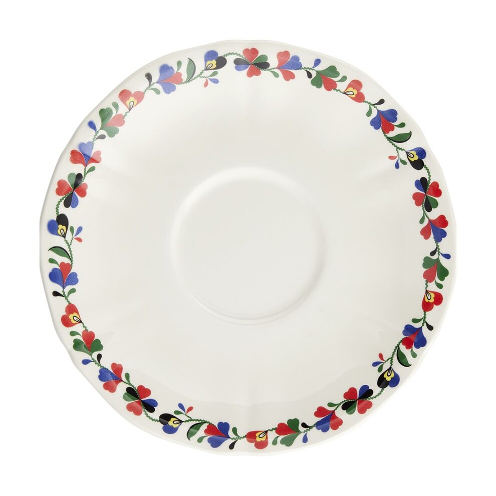 L’objectif était de réinterpréter ce symbole emblématique tout en mettant en lumière le lien entre l’artisanat textile qui lui est cher et la faïence de Gien. Ce décor, avec ses couleurs vives évoquant les fichus d’autrefois et son trèfle central, incarne une invitation à la joie et à l’optimisme.