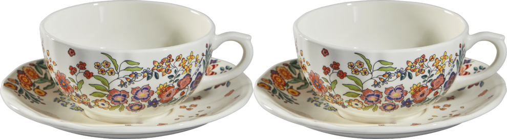 A l’heure du thé, du café, ou du déjeuner, on adopte ce service fleuri. Avec ses couleurs vives orange, rose, bleu, et son imprimé fleuri indémodable, cette vaisselle met de bonne humeur et se sent bien sur toutes les tables !