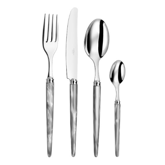 Cette ligne comporte tous les couverts : table, dessert, poisson, gâteau et pièces de service telles que pelle à tarte, pelle à riz, pelle à lasagne, service salade, service à servir, service poisson, louche à potage, cuillère sauce, couteau steak, couteau à fromage, couteau pain, tartineur.