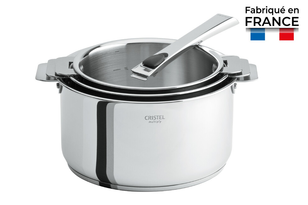 Cette casserole tout inox de la collection Casteline à poignée amovible de la marque Cristel vous offre efficacité, durabilité et performance au quotidien pour votre cuisine.