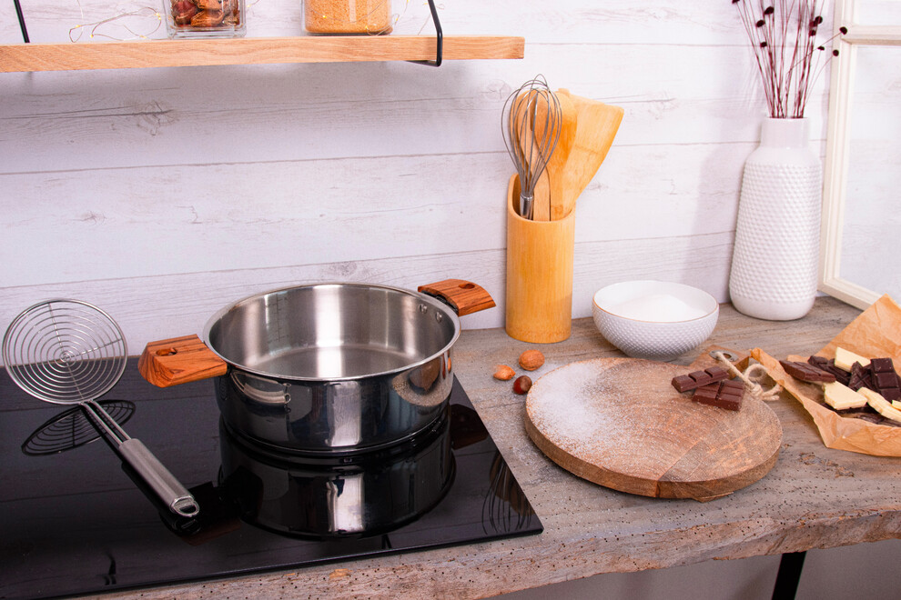 Venant de l’ancien français « casse » signifiant louche ou grande cuiller, la casserole constitue aujourd’hui avec la poêle, le faitout et la sauteuse une des pièces de base des batteries de cuisine.