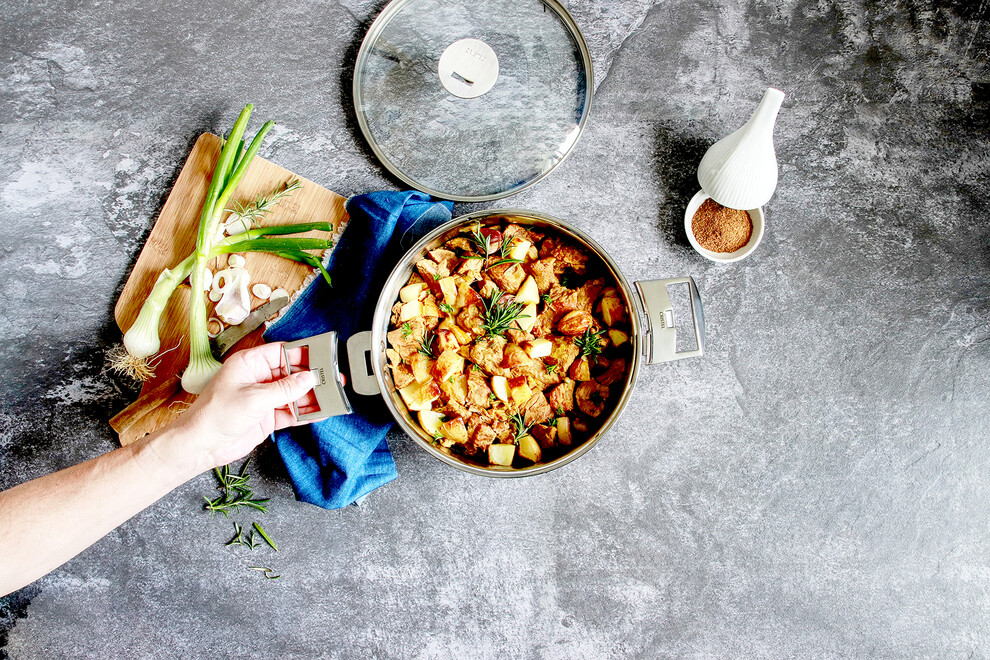 La collection Casteline amovible vous permet de passer de la cuisson au service grâce à sa fonction « Cook & Serve » qui transforme chaque ustensile en élégant plat à service. Multifonction, passez d’une casserole à un faitout, d’une poêle à un plat à four et d’une sauteuse en un plat à service d’un geste simple. La poignée amovible vous offrira également un rangement compact : chaque article s’emboite les uns dans les autres pour un gain de place optimal dans votre cuisine.