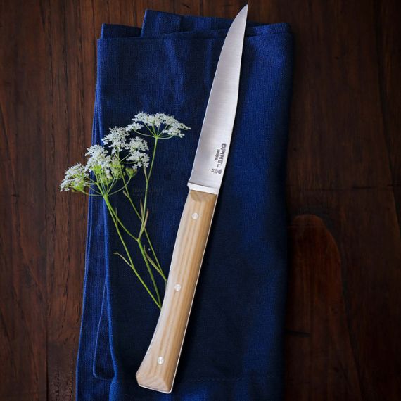 Le frêne, originaire des forêts du Jura, est le choix idéal pour les manches de ces couteaux. Son bois dur d'une teinte beige clair à blanc, orné d'un veinage blond régulier, apporte une touche d'authenticité à chaque pièce.
