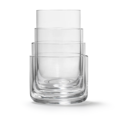 Les verres en cristal finement conçu, se déclinent en quatre formes, créant un concept ludique et unique ! Ils ne sont pas empilables de façon classique, mais s’imbriquent les uns dans les autres pour optimiser l’espace de rangement.
