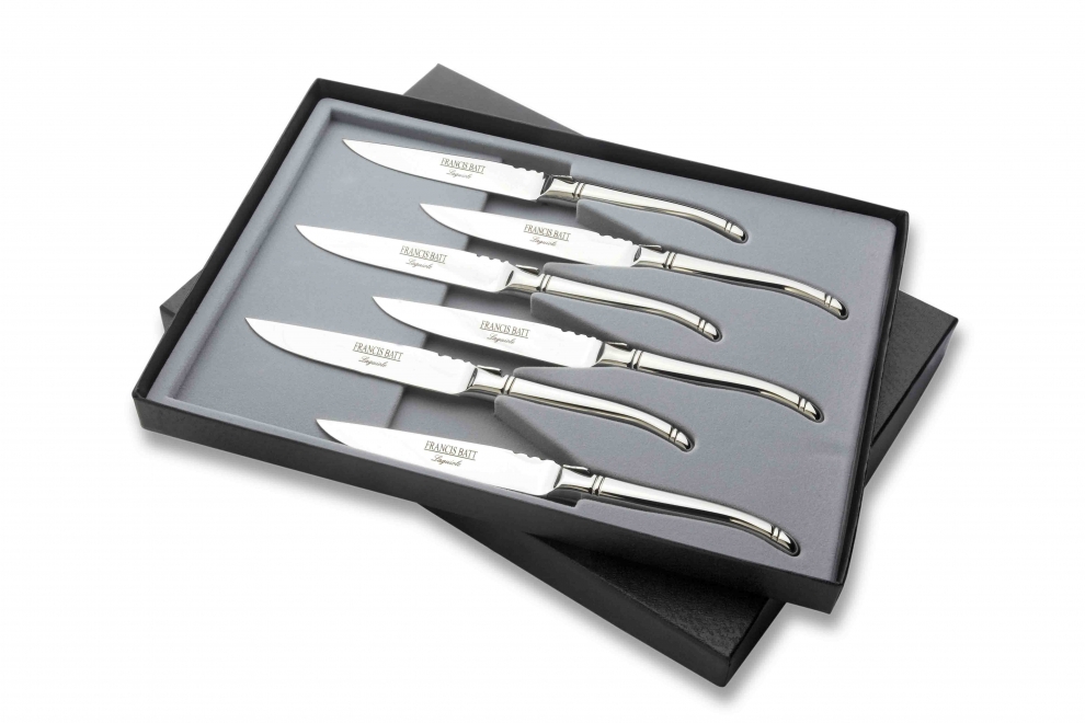 Ensemble de 6 couteaux Laguiole . Lame et manche en acier inoxydable. Passent au lave-vaisselle.