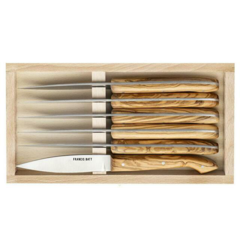 Coffret de 6 couteaux à steak Capucin manche bois d'Olivier