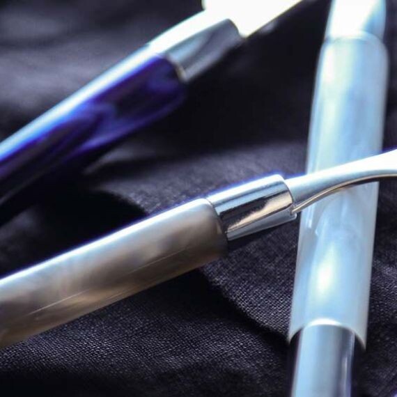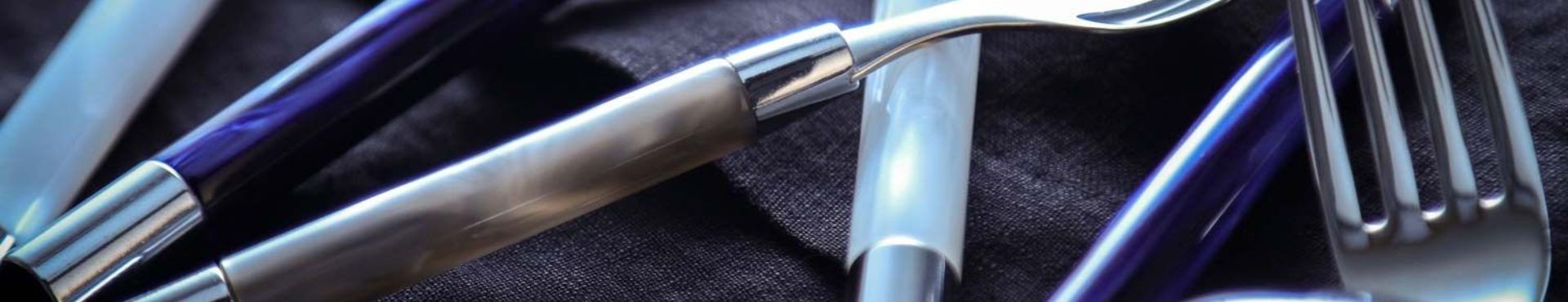 Avec leur manche en résine acrylique, le haut de couvert découpé en inox 18/10 et leur virolle en laiton décolletée, chromée, les couverts Conty vous apporteront une subtile élégance à votre table !