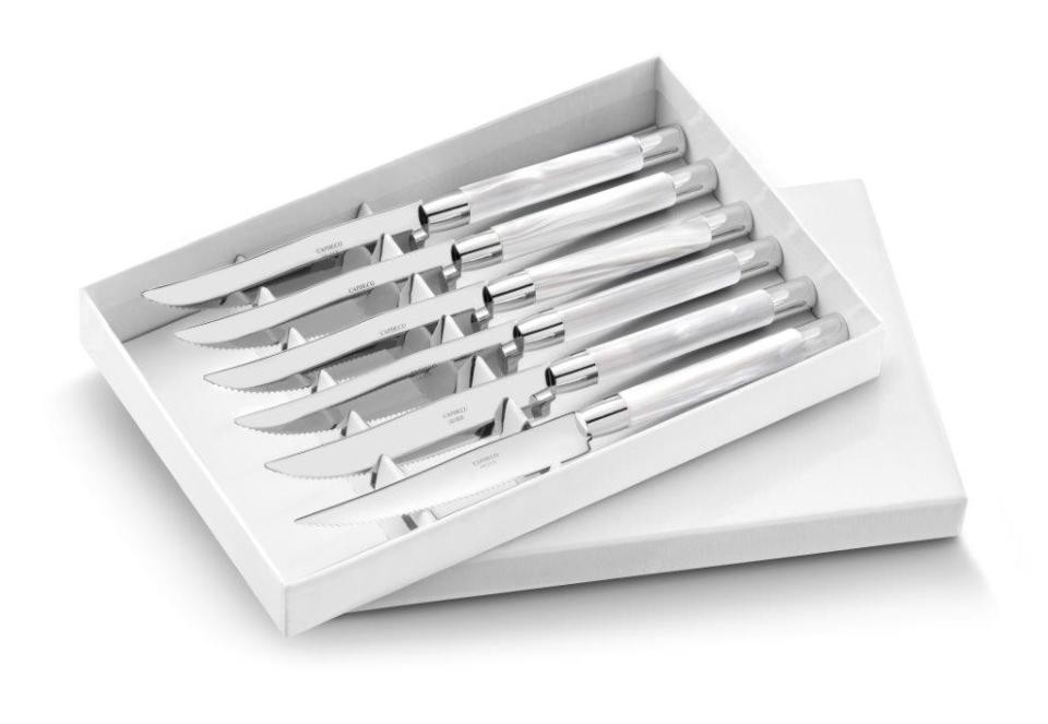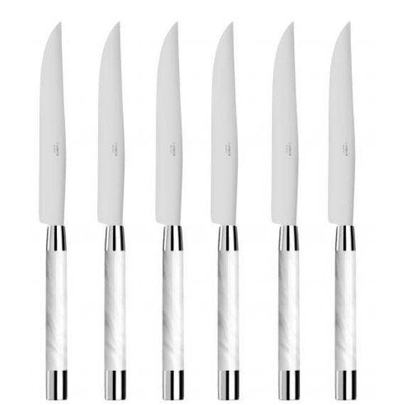 Le coffret à steak CONTY nacré blanc est composé de 6 couteaux à steak, classiques et intemporels de l'art de la table, qui apporteront classe et élégance à votre table.