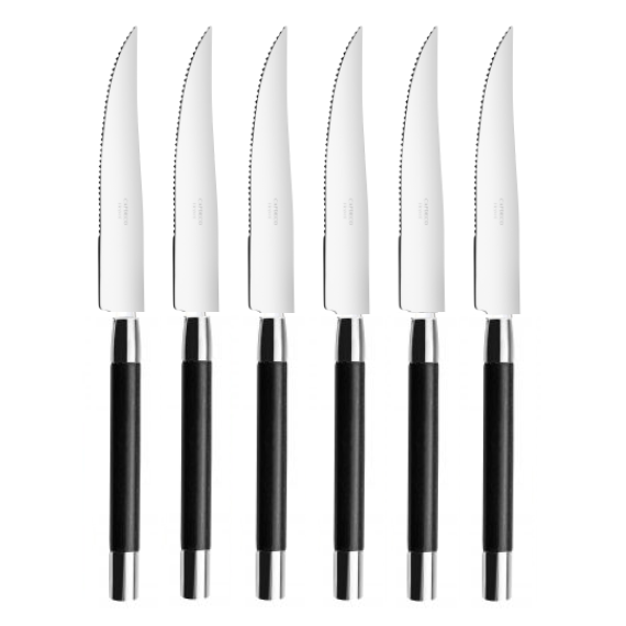 Le coffret à steak CONTY bois noir est composé de 6 couteaux à steak, classiques et intemporels de l'art de la table, qui apporteront classe et élégance à votre table.