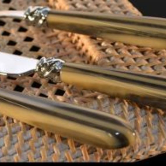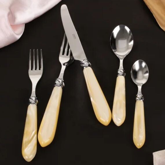 Cette ligne comporte tous les couverts : table, dessert, poisson, gâteau et pièces de service telles que pelle à tarte, pelle à riz, pelle à lasagne, service salade, service à servir, service poisson, louche à potage, cuillère sauce, couteau steak, couteau à fromage, couteau pain, tartineur.