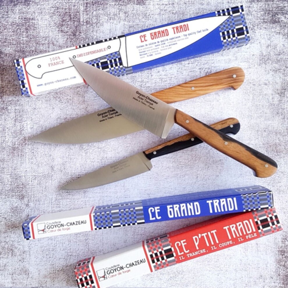Le P’tit Tradi et le Grand Tradi, deux couteaux complémentaires, polyvalents et ultra-performants, se retrouvent dans ce set conçu pour simplifier votre quotidien en cuisine ! Leur taille et la forme de leurs lames ont été spécialement étudiées pour rendre la préparation des repas agréable et accessible à tous. Que ce soit pour équiper votre cuisine pour la première fois ou pour enrichir votre collection de couteaux, essayez-les : ils deviendront rapidement des indispensables !