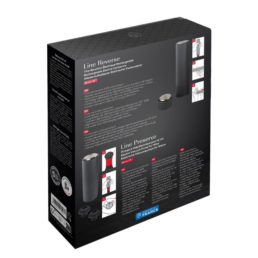 Coffret Master of Vine Tire-bouchon électrique Line Reverse et pompe de conservation électrique Line Preserve noir mat.