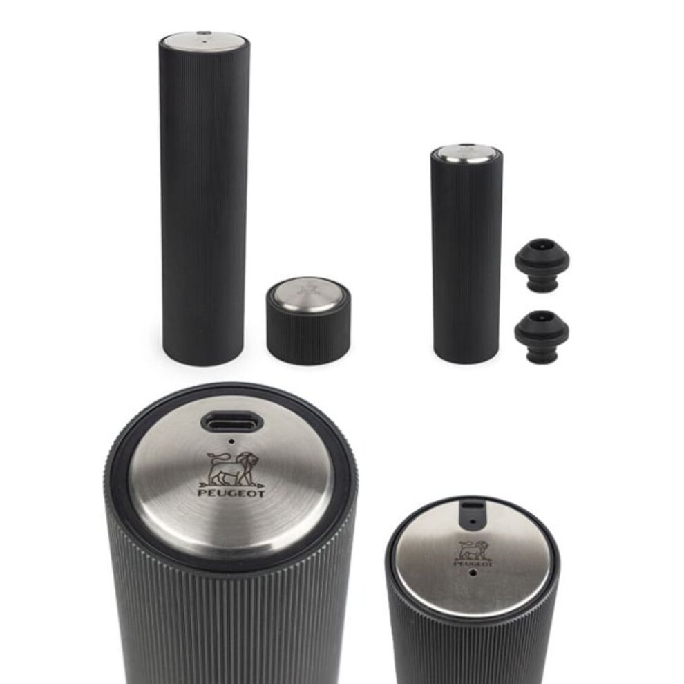Un design épuré et graphique mêlant raffinement et innovation. Avec une batterie Lithium-Ion de dernière génération, ces accessoires facilitent la dégustation et la conservation du vin.