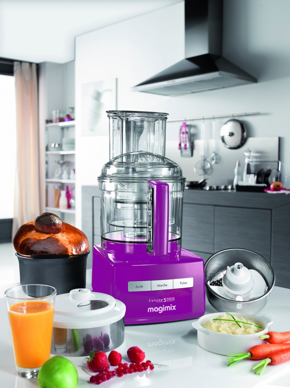 Nouveau Cuisine Système 5200 XL de Magimix est équipé d'un nouvel accessoire : la goulotte Extra Large. Elle permet d'émincer, râper et faire des bâtonnets de fruits et légumes entiers ou en gros morceaux et en grandes quantités.