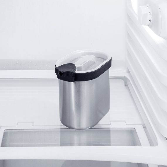 Le complément idéal pour les machines professionnelles.Le grand récipient à lait en inox d'une capacité de 2.5 l permet au Cool Control de préparer de nombreuses spécialités de café au lait. Grâce à l’indicateur de niveau, vous pouvez controler le niveau du récipient. L’appareil possède également un mécanisme de verrouillage qui le protège de toute intrusion. |