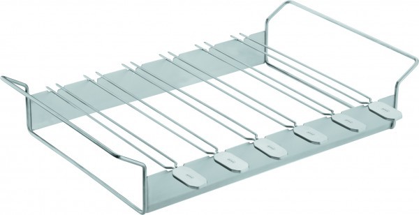 Set de 6 brochettes avec portant. Les brochettes peuvent tourner et se positionner de 4 manières différentes afin d'assurer une cuisson complète.