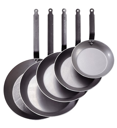 Poêle à frire en tôle d'acier idéale pour saisir, griller et dorer de la viande, du poisson, des œufs…