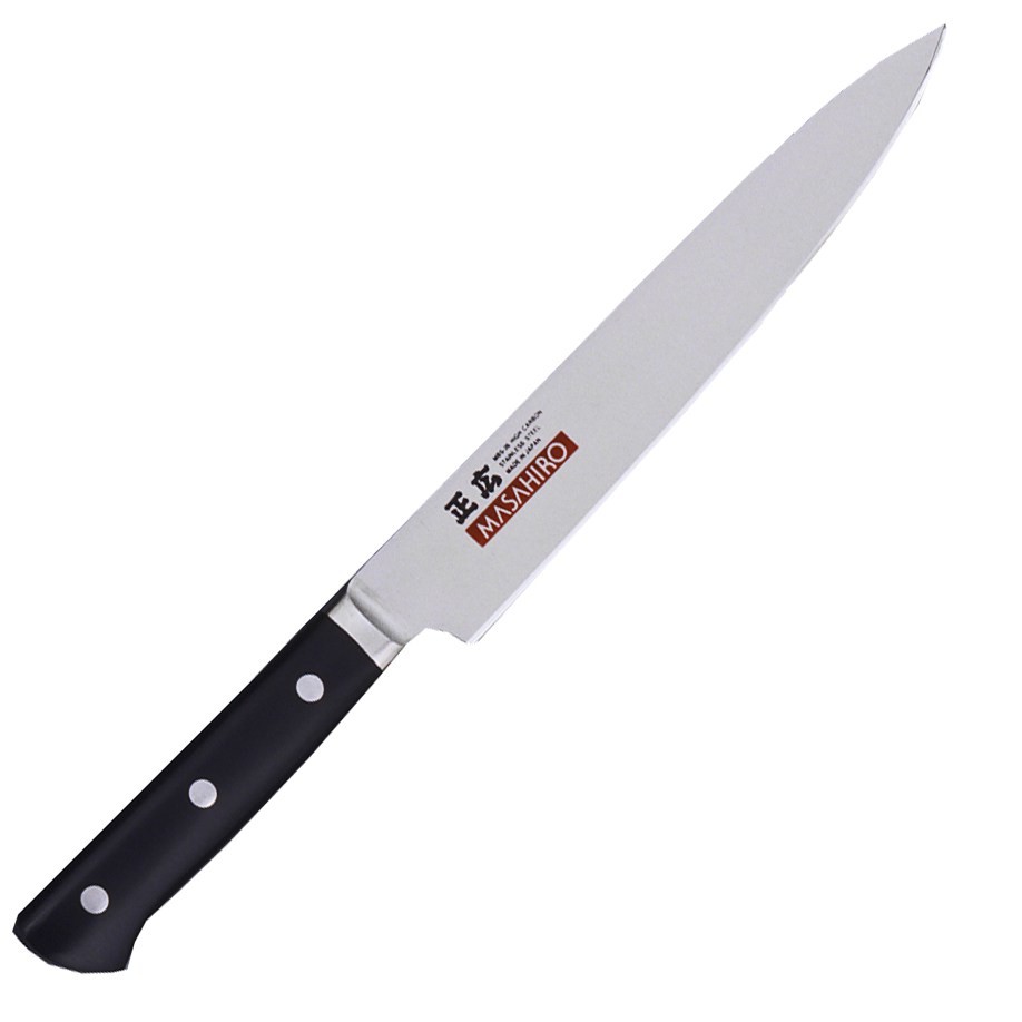 Le couteau à découper Masahiro M14 est léger et parfaitement équilibré. Sa prise en main est optimale pour une grande efficacité de découpe.