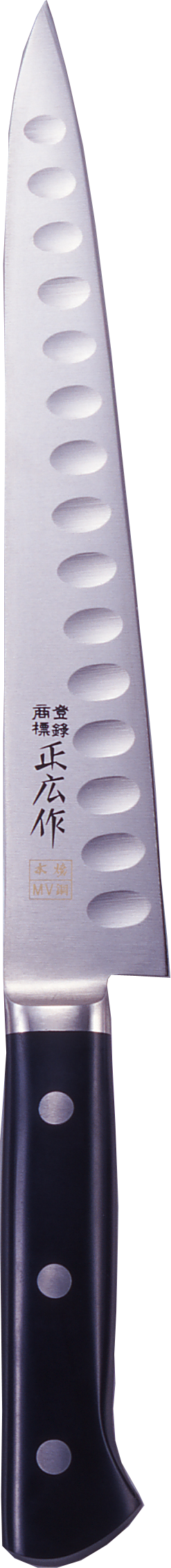 Sa lame en acier MBS25 à 0,9% de carbone avec un triple traitement thermique lui confère un tranchant extrême et robuste. La version alvéolée de ce couteau Masahiro est parfait pour réduire l'adhérence des aliments sur la lame. Sa forme créée des coussins d'air sous les aliments pour limiter l'effet ventouse.