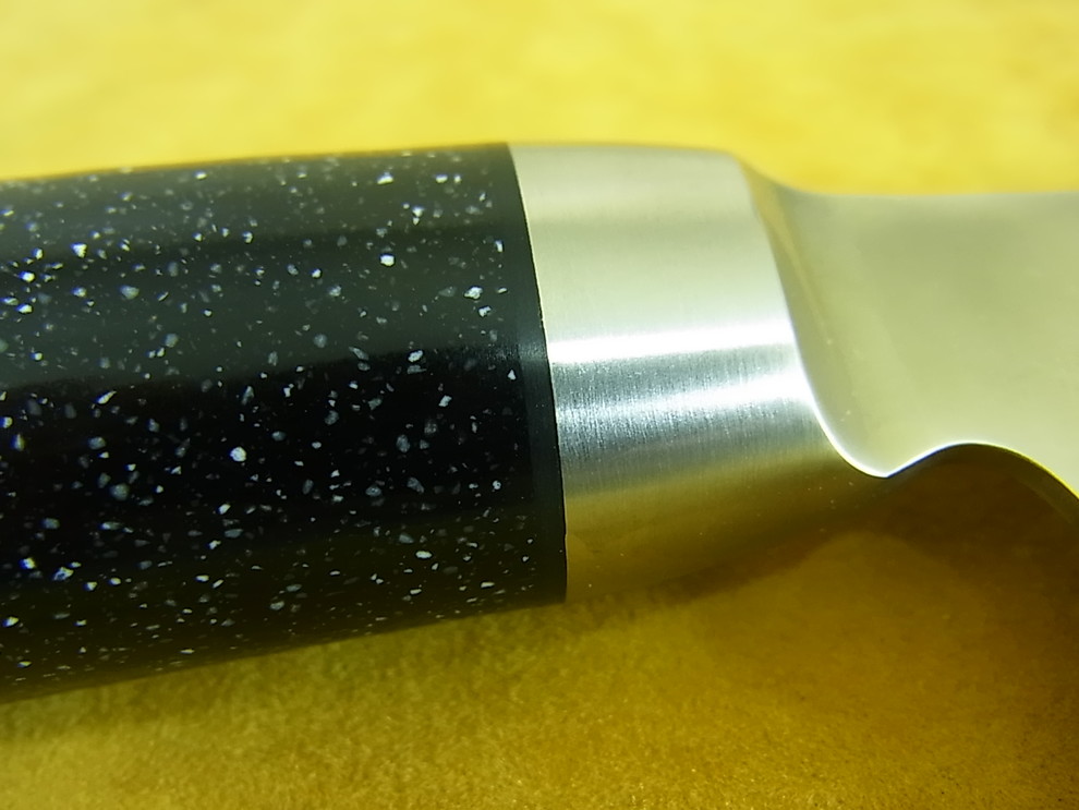 Le manche du couteau à désosser V05 Kasumi VG-10 Pro est façonné dans du marbre artificiel. Ce matériaux est particulièrement résistant à l'usure et ne craint pas la corrosion.