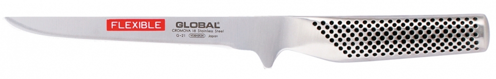 Ce couteau à désosser à lame flexible Global G21 est idéal pour désosser et écorcher les viandes et les volailles.