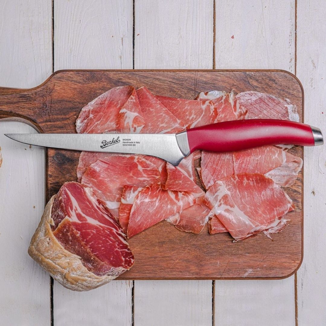 Le Couteau à désosser Teknica rouge 16 Cm est court et maniable. Parfait pour couper le gras, la couenne, les os et résidus sur les morceaux de viande. De plus, la lame résiste à la corrosion et au frottement avec la céramique de l'assiette. Doté d'un lame en acier de haute qualité, obtenue après traitement thermique, il assure une découpe très précise. Elle est affutée et réalisée selon les techniques traditionnelles. Le manche du couteau est imprimé en polymère avec une poignée très ergonomique, pour une meilleure accroche en main. Petit détail esthétique, le logo Berkel est gravé sur la lame ! Un couteau parfait pour une découpe précise. |
