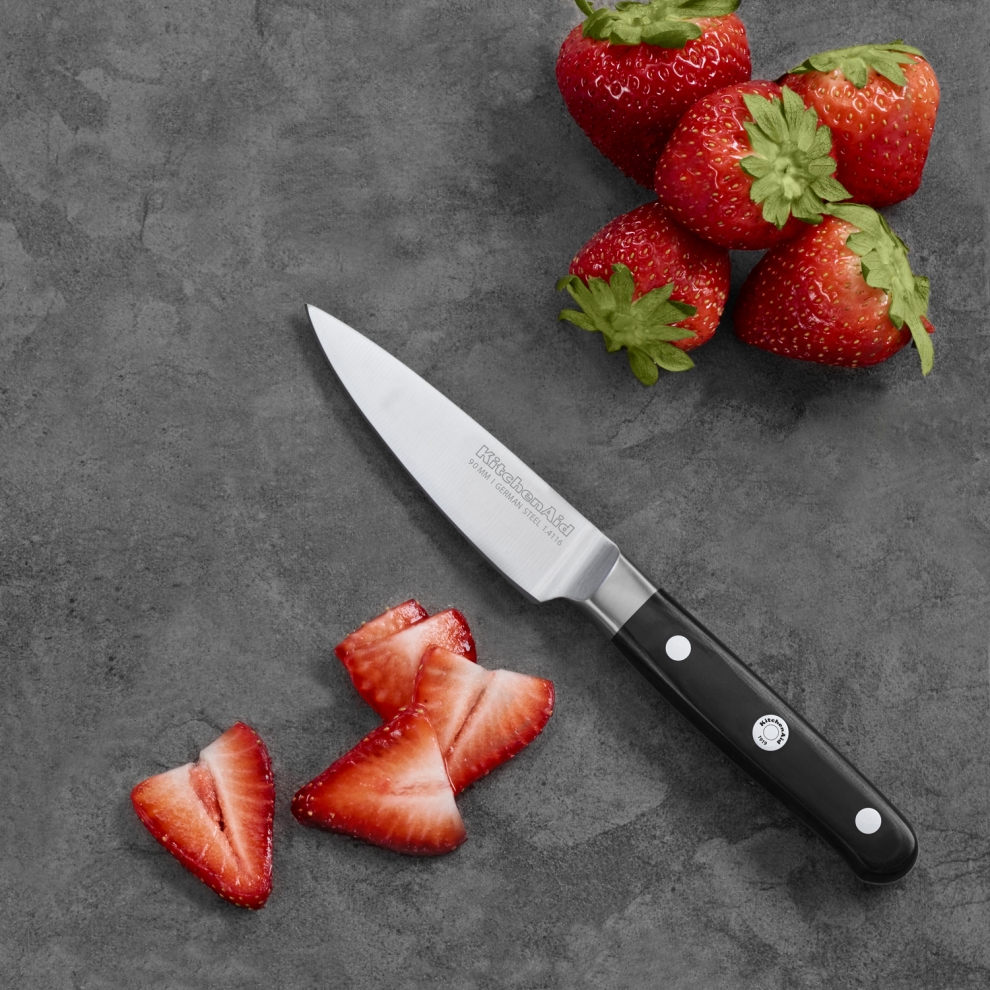 Petit et pratique, le couteau à éplucher de Kitchen Aid est parfait pour la découpe de légumes et de fruits.