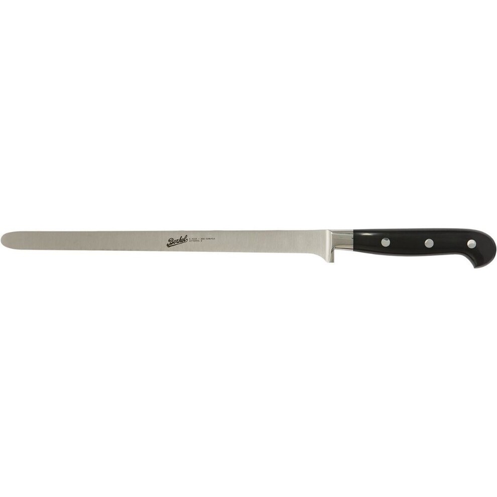Le couteau A Jambon Adhoc 26 Cm est flexible et maniable. Parfait pour couper tout type de charcuterie. Doté d'un lame en acier de haute qualité découpée au laser, il assure une découpe efficace. Le manche du couteau est composé d'une résine assemblé avec des rivets en acier inoxydable. Petit détail esthétique, le logo Berkel est gravé sur la lame ! |