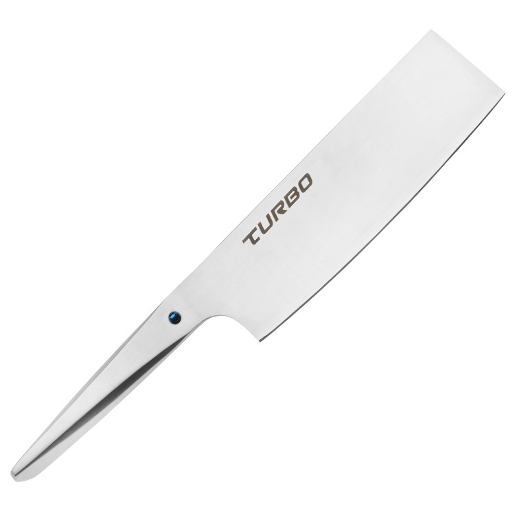 Issue de longues années de recherche, la ligne Turbo voit enfin le jour et représente le meilleur de la coutellerie occidentale et asiatique. Son manche ergonomique en inox retour curve apporte une esthétique hautement fonctionnel tandis que sa lame s'inspire des plus grands couteaux japonais.
