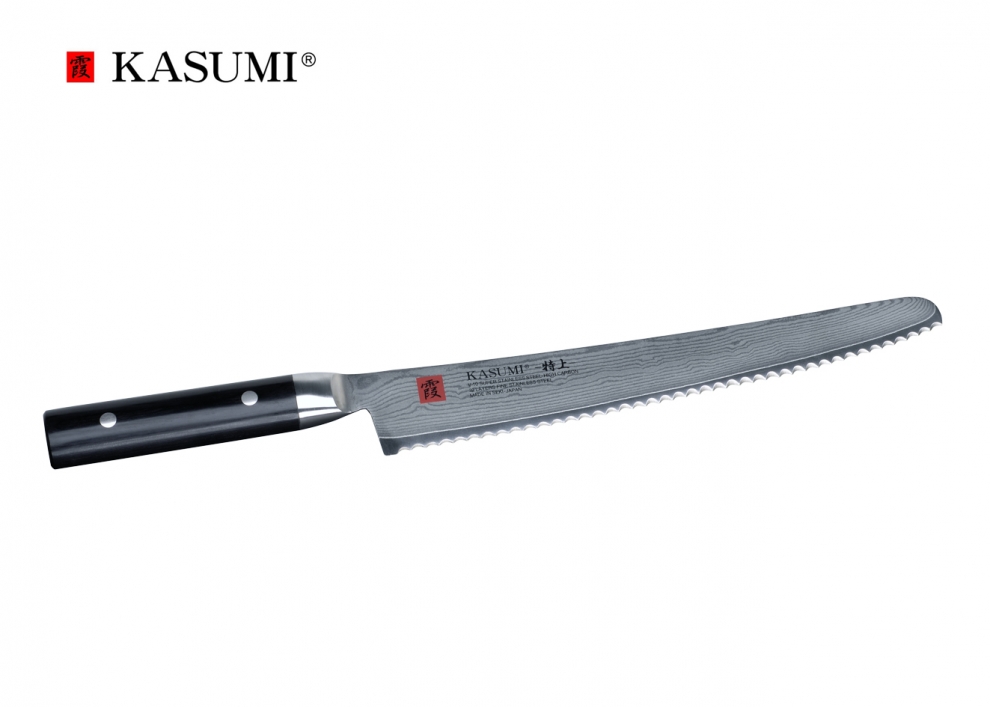 La gamme Kasumi superior identifiée dans le monde entier par les références de fabrication K01, K02, etc... se différencie des Kasumi standards (références de fabrication en 5 chiffres 84... à 88...) et autres damas similaires par un double aiguisage et un double polissage par l'élite des maîtres couteliers de Seki Le contrôle qualité est drastique, les produits sont triés sur le volet dans une optique de choix très sélectif. En sus des références différentes, la gamme est identifiée par un kanji imprimé sur la lame à côté du logo Kasumi, signifiant supérieur en japonais.