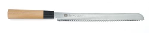 Le pankiri Chroma Haiku H08 est un couteau à pain japonais à lame dentelée. Ce couteau scie est parfait pour entamer la croûte dure des pains, brioches et viennoiseries. L’effort de coupe est réparti sur chaque dent et vous venez facilement à bout de toutes les croutes épaisses. La hauteur réduite de la lame permet une coupe lisse, sans risquer de déchirer la mie.