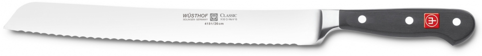 Le couteau à pain fait partie de l’équipement de base. Sa solide lame tranche sans peine les pains, durs ou mous, sans les écraser. Longueur de lame 26 cm. A lame crantée.Vous avez acheté ce produit sur francisbatt.com ?