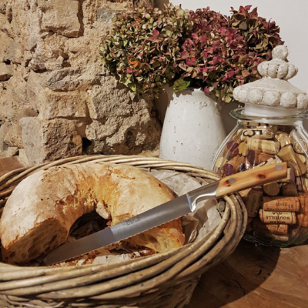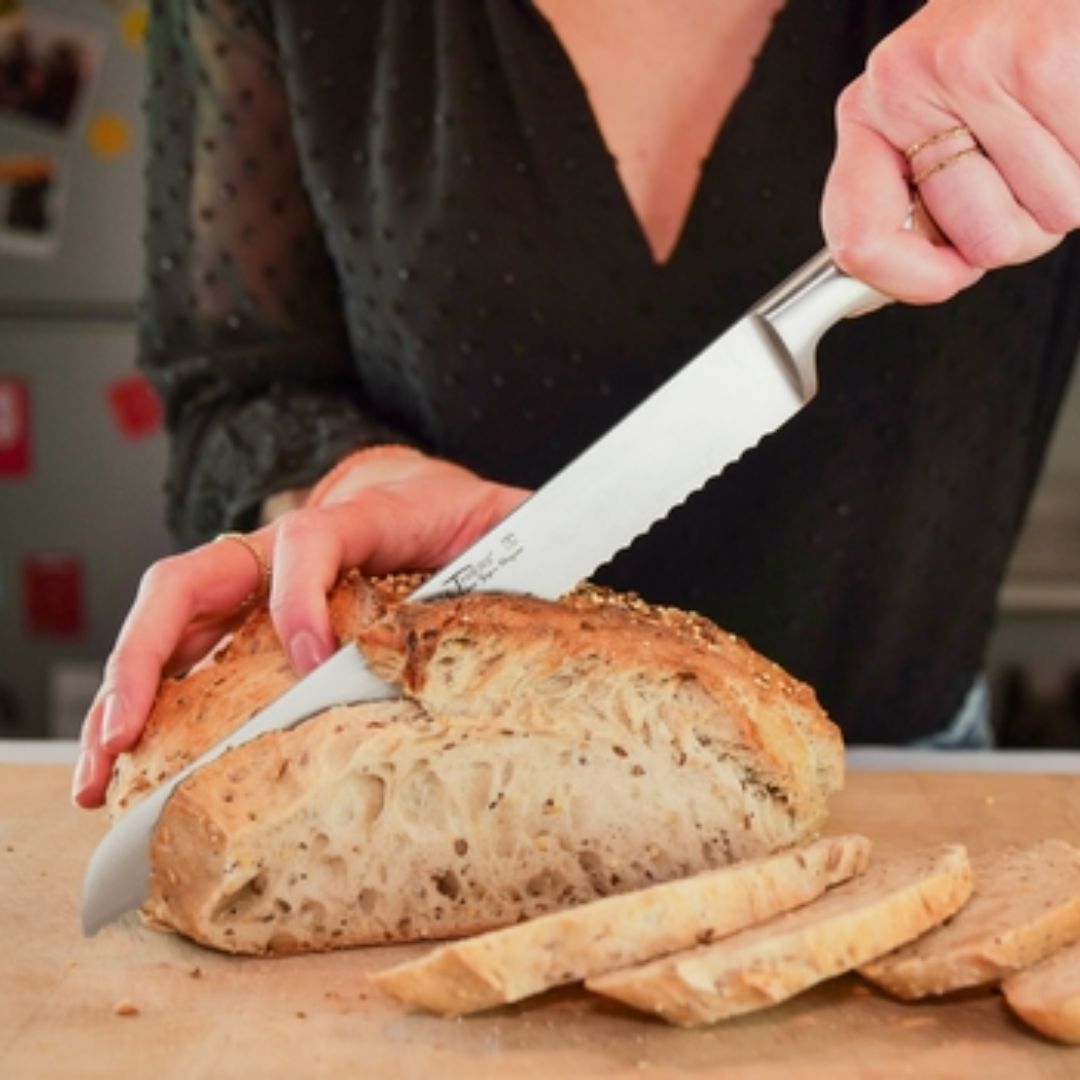 La longue lame dentée du couteau à pain facilite la découpe des aliments à croûte dure, comme le pain, les brioches ou les tourtes.