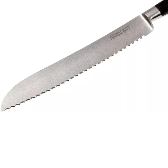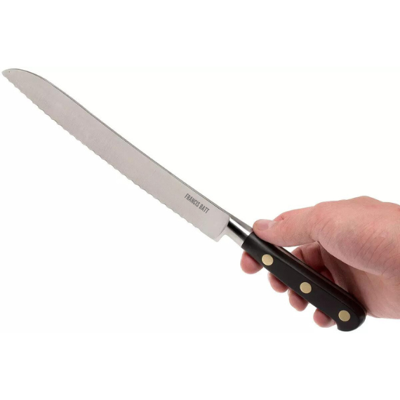 Découvrez l'art de couper le pain avec le Couteau à Pain Forgé Pro de 20 cm de la marque Francis Batt. Doté d'une lame forgée professionnelle et d'un design élégant, ce couteau à pain offre une coupe précise et efficace pour toutes les variétés de pains.