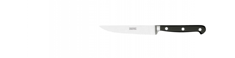 Couteau à steak 13 cm FORGÉ MICRODENTÉ À MITRE CARRÉE MANCHE NOIR RIVETS INOX