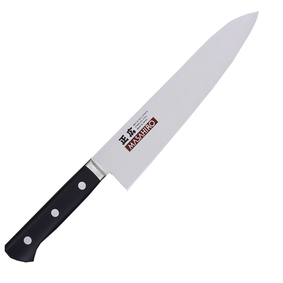 Le couteau Gyuto M07 de la marque Masahiro est une adaptation japonaise d'un couteau du chef. La forme de sa lame est très occidentale, mais elle bénéficie d’un acier de très haute qualité et d’un affutage rasoir japonais.