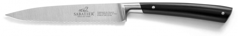 Couteau cranté Légufruit ou bagel Forgé 13 cm EdoDesign manche noir rivets inox