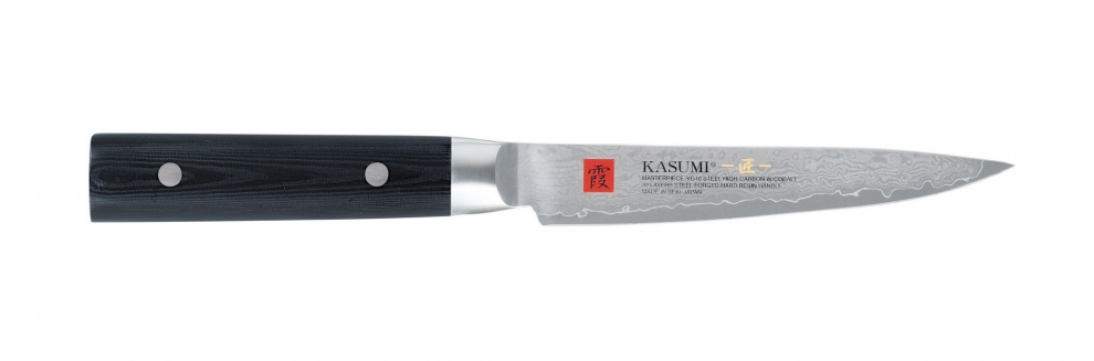 Le couteau d'office Masterpiece MP02 de la marque Kasumi est un petit couteau à lame mince, fine et pointue. Cette lame de 12 cm est plus longue que celles des couteaux d’office habituels. Son tranchant légèrement courbé est parfait pour émincer de petites préparations, telles que les oignons, l’ail ou les herbes. Extrêmement léger et maniable, il peut être utilisé pour éplucher, peler, nettoyer, tourner ou simplement couper les petits légumes et les fruits.
